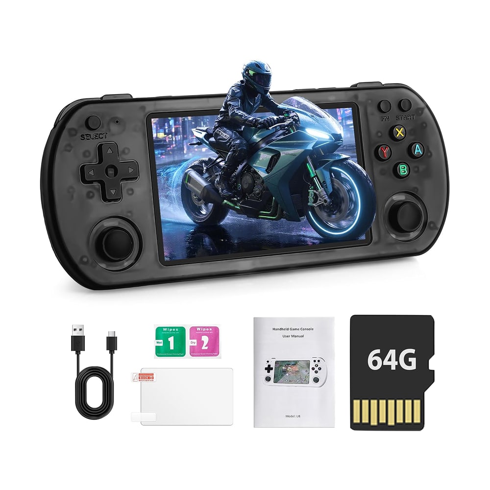 With 4420+ pre-installed games and support for 20+ emulators, this console offers substantial gaming variety. The tempered glass screen protection ensures durability against scratches and minor impacts during portable use.