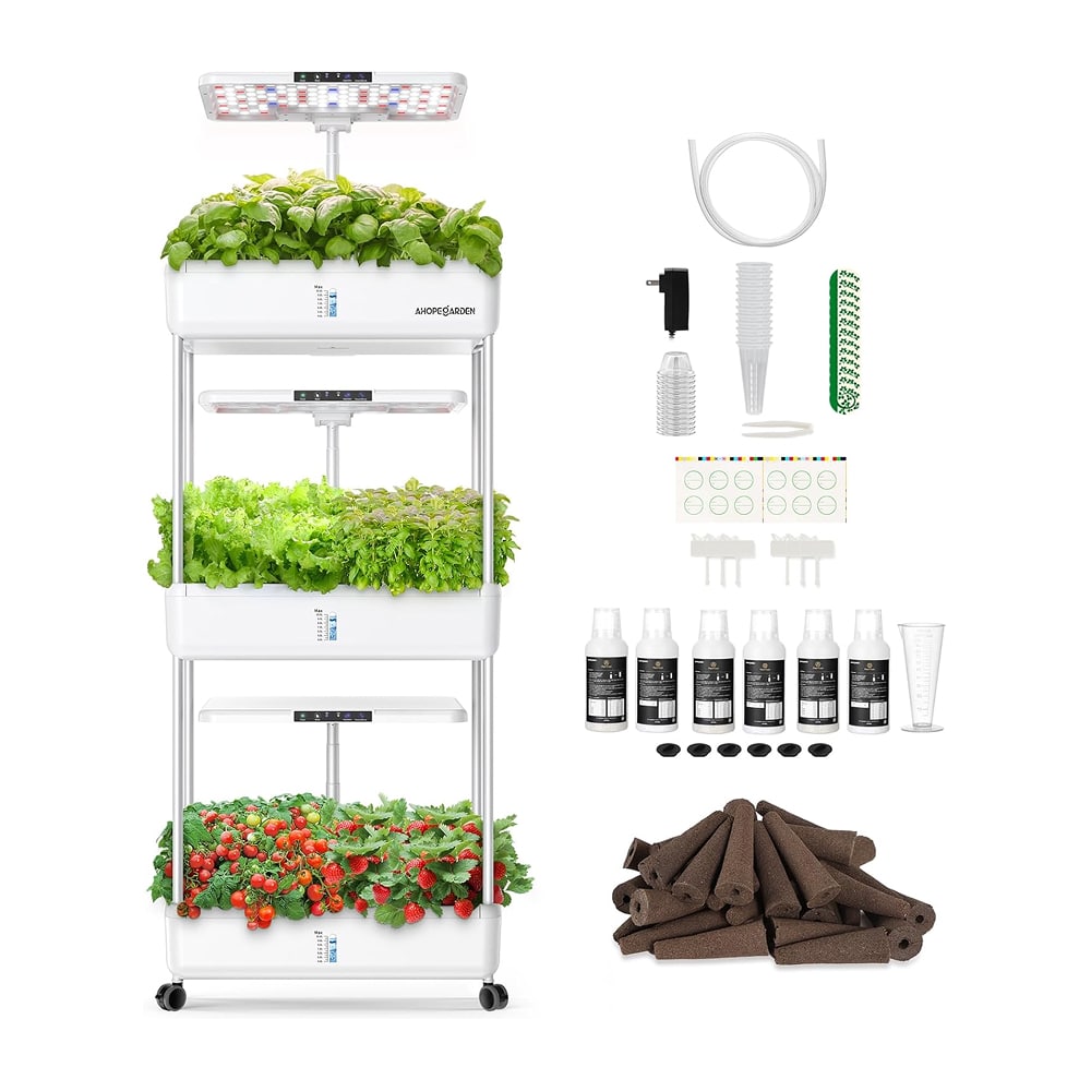 The Ahopegarden Indoor Hydroponic Garden revolutionizes home cultivation with its innovative triple-layer hydroponic system featuring independent water pumps for zone planting—a breakthrough that allows simultaneous cultivation of plants with vastly different nutrient requirements. This 66-pod capacity across three 10L tanks (30L total) makes it the highest-capacity system in our comparison, perfect for families wanting diverse harvests or urban farming enthusiasts.