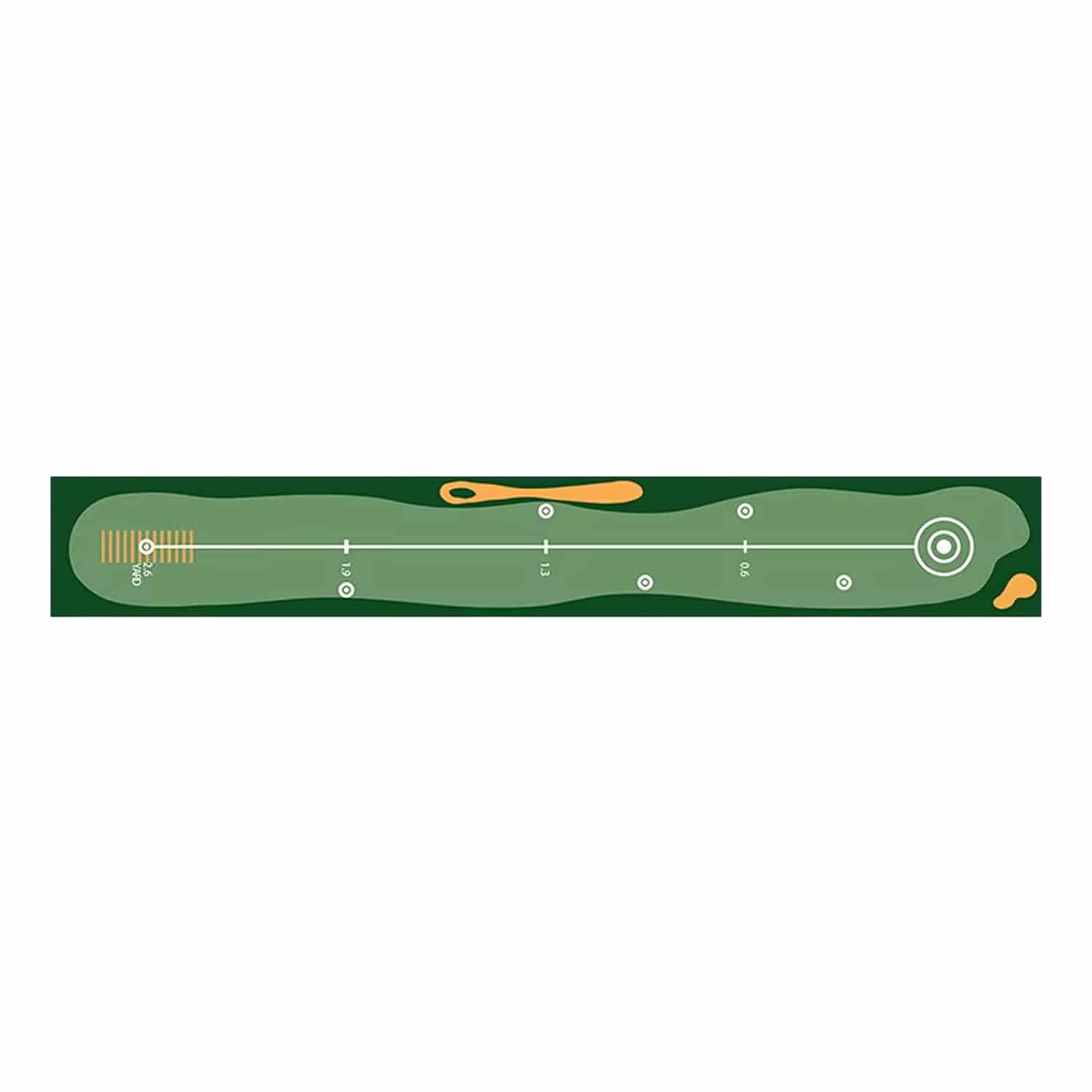 Versatility shines through with both indoor and outdoor functionality, making this the perfect training aid regardless of weather or available space. The hazard areas along the sides introduce realistic challenges to your practice routine, whilst the distance markings in both imperial and metric measurements (13', 19', 26' and corresponding centimetres) allow for structured practice sessions that systematically improve your distance control. 😊