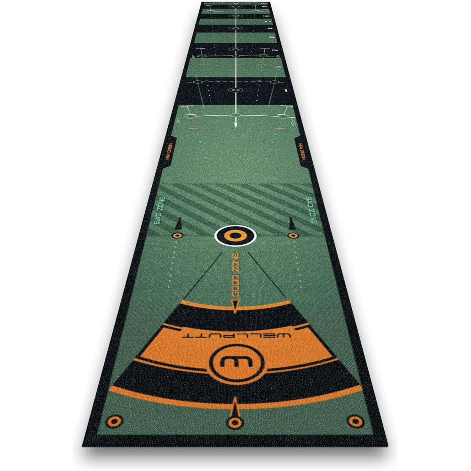 The multiple visual aids integrated into the surface provide exceptional feedback for body positioning, putter alignment, and stroke amplitude. These thoughtfully designed markings create a comprehensive training system rather than just a simple putting surface, making it particularly valuable for golfers working on technical improvements.